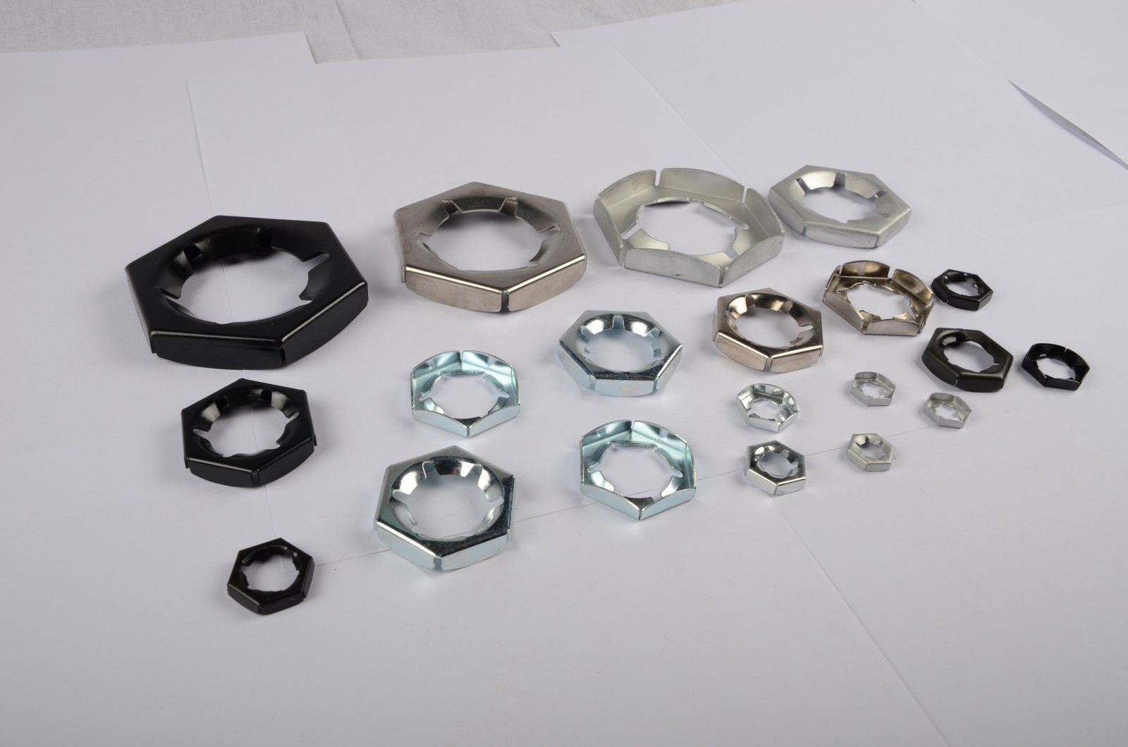國標GB805扣緊螺母,65MN材質/硬化達克羅涂層處理!采用沖壓工藝,常用M6-M48型號都有現貨!JYD品牌扣緊螺母品質相對專業,功能及外觀與一般性市面扣緊螺母有明顯品質差別!歡迎索取樣品比較!
